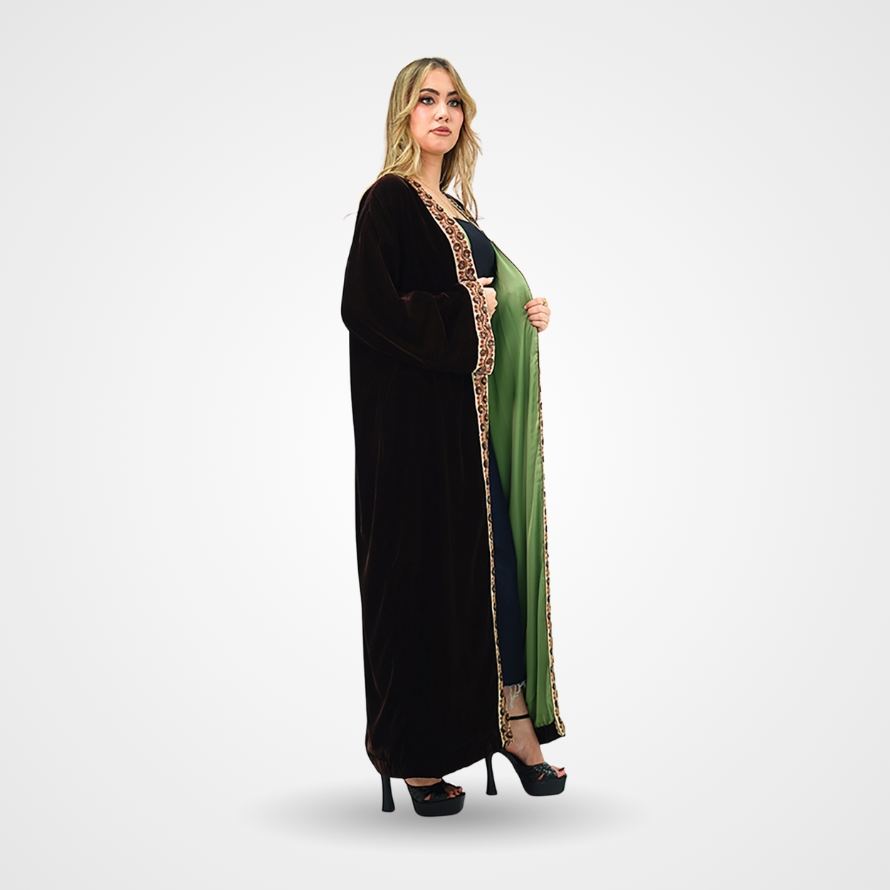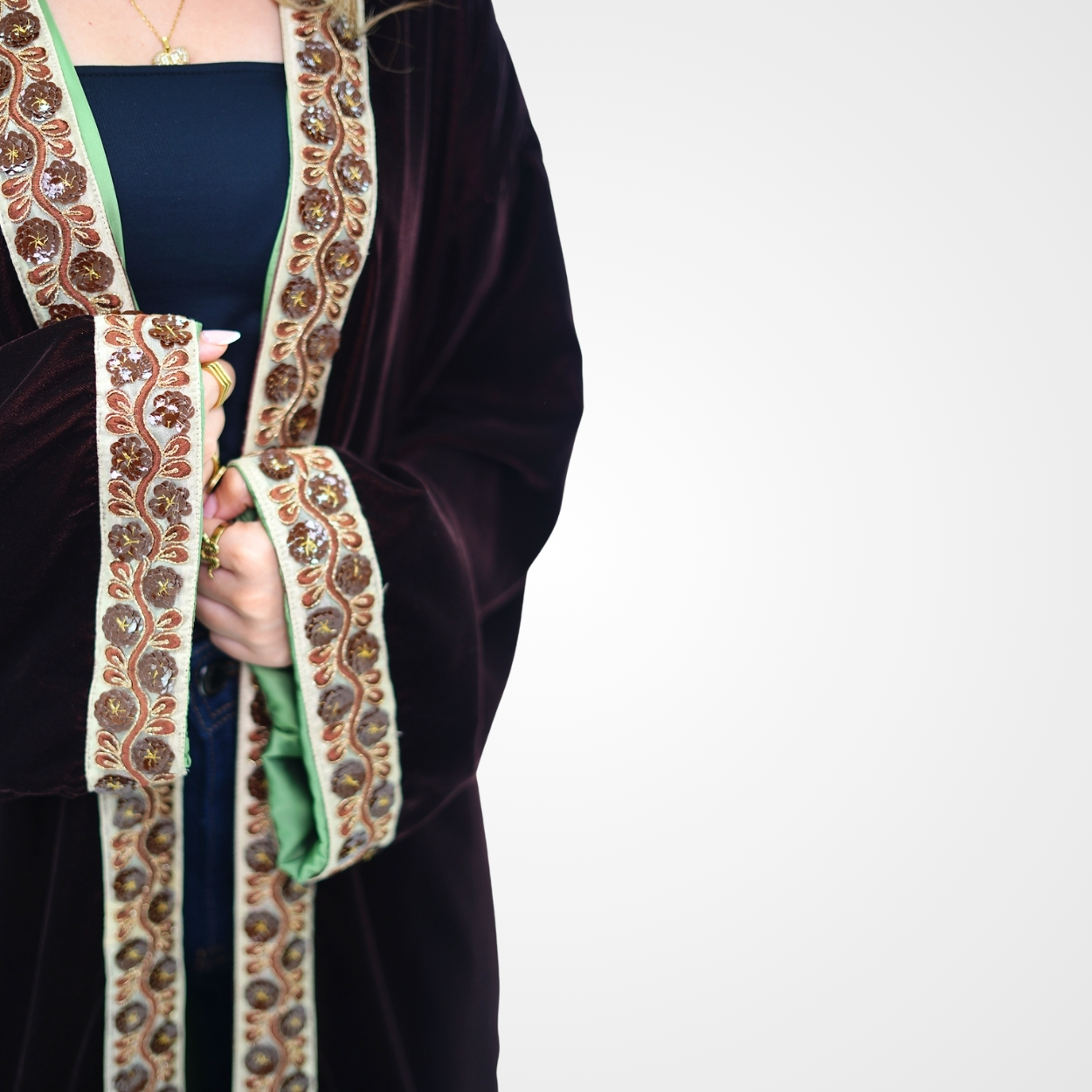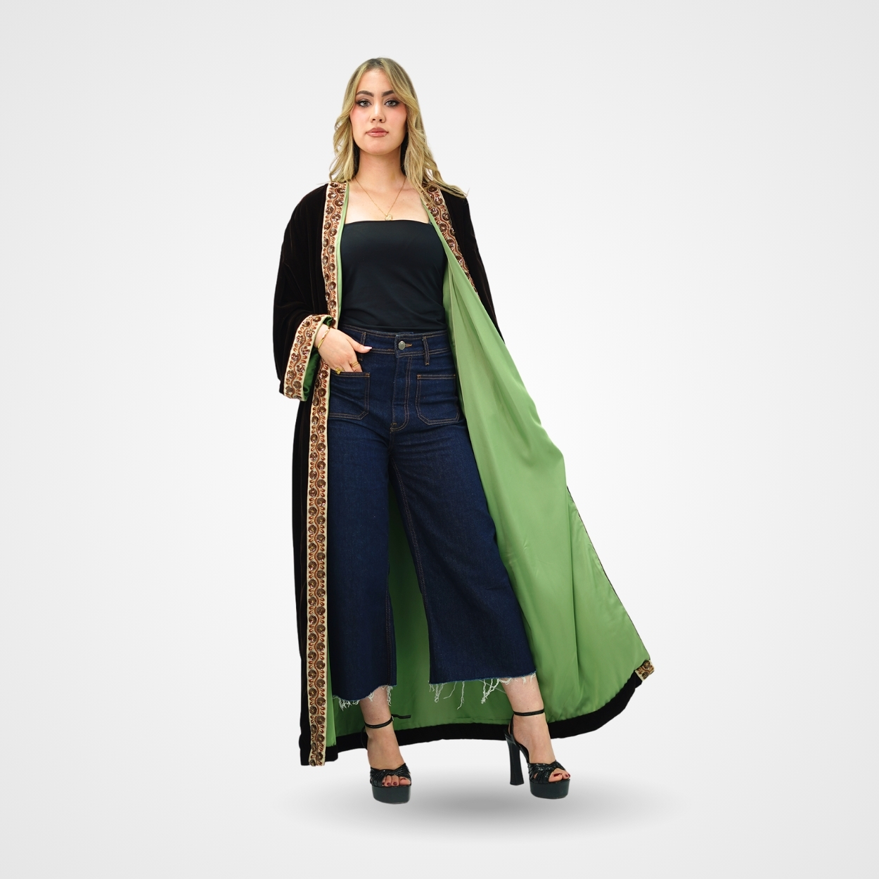 Conçu pour la femme moderne qui apprécie l’artisanat de luxe, ce kimono long se distingue par son tombé fluide et ses contrastes audacieux. Sa texture riche et ses finitions soignées en font le choix idéal pour rehausser une tenue décontractée ou parfaire un look de soirée.